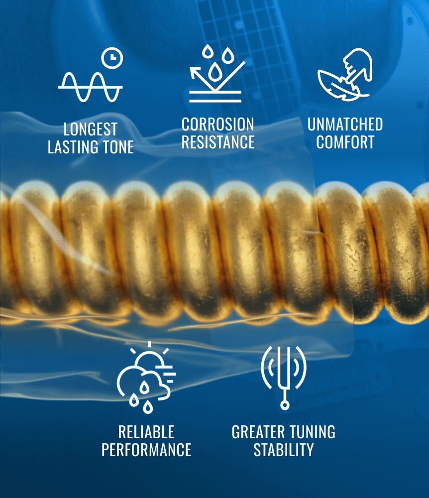 The exclusive OPTIWEB Technology not only protects the guitar string from the elements for longer tone life, but also allows the string to vibrate with less damping – for a crisp tone with a firm, natural grip that puts you in control of bends, vibrato and sustain.